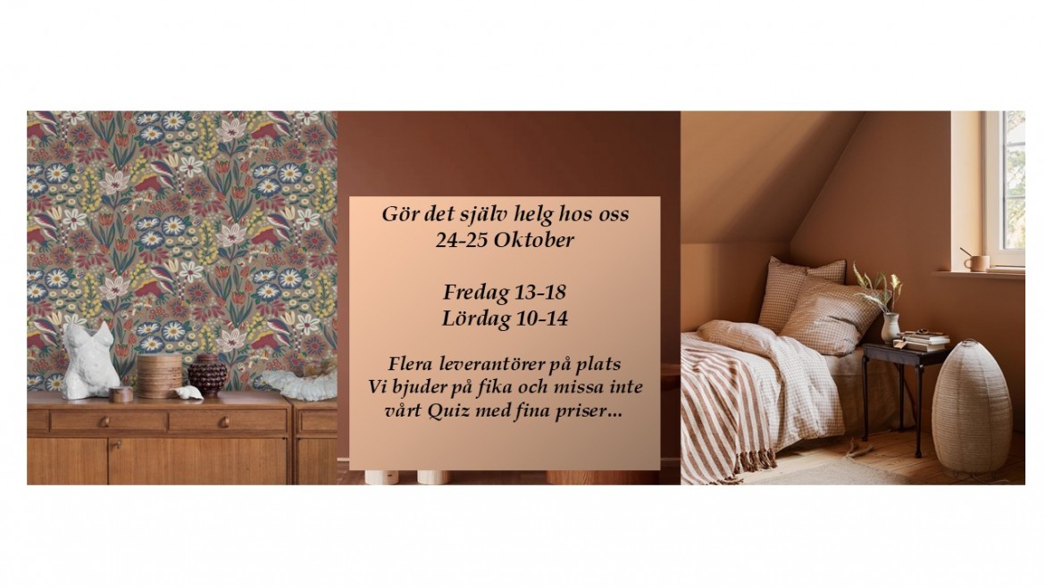 Välkomna till oss för att prova på hur man spacklar, tapetserar, målar mm. Fredag 10-18 Ola från Kronaas Måleri kommer och visar hur man spacklar hörn och remsor, du har möjlighet att prova på själv ...