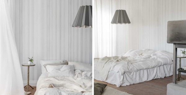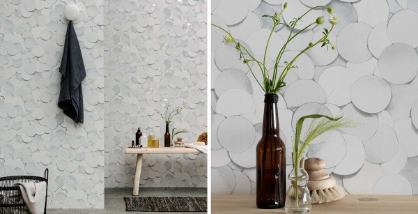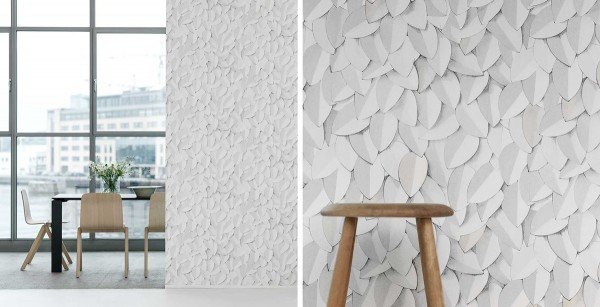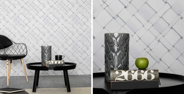 – Mönstren i kollektionen har sitt ursprung i tillverkningstekniken för tapeter, berättar Charlotte och förklarar hur processen med att ta fram kollektionens nio mönster började med att gruppen satte saxen i några tapetrullar. Front har klippt, vävt och vikt papper till figurer som sedan tecknats av. De har prövat sig fram, letat efter och hittat former som både är diskreta nog att hålla sig i bakgrunden som tapeter ska göra men som samtidigt sticker ut med en upplevelse av tredimensionalitet.